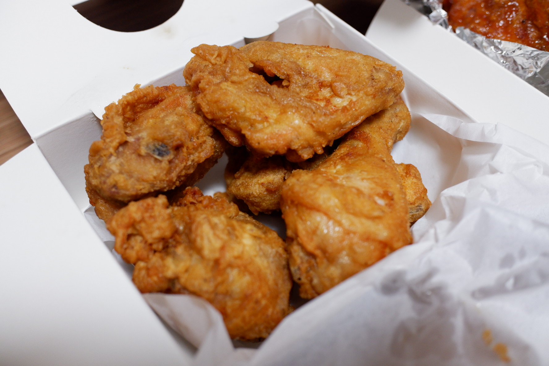 처갓집은 후라이드가 조금 특이하긴해요. 약간 두꺼운 튀김옷에 처갓집만의 특유한 향이 있습니다.