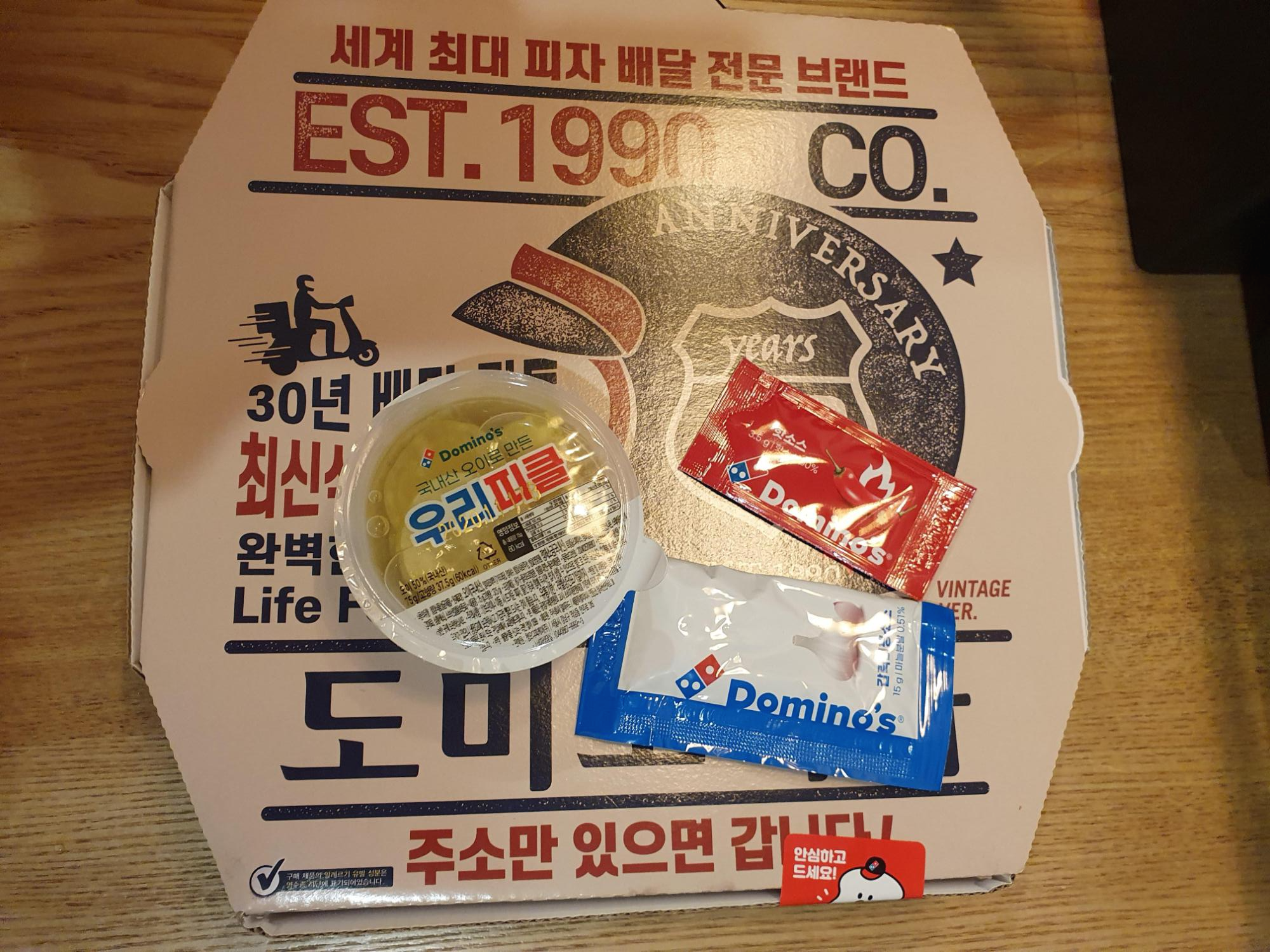 그 다음은 도미노피자인데요. 수원역 근처에서 피자를 먹으려고 했는데, 시간이 너무 늦어서 그냥 동네에서 도미노피자를 주문했어요. 도미노피자는 맛있긴 하지만 가격이 너무너무너무 비싸서 자주 못먹는데요. 오랜만에 먹게 되었습니다.