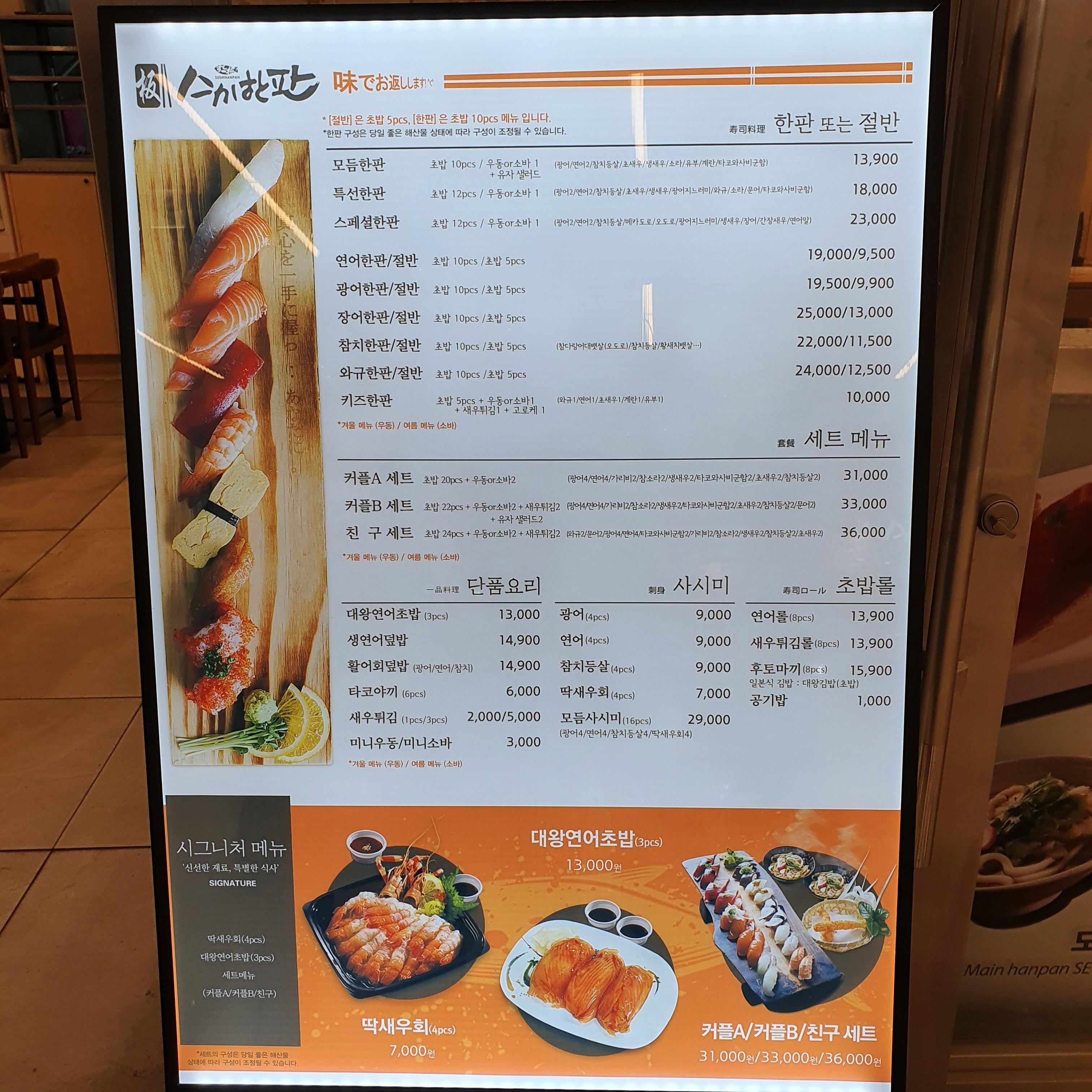 안녕하세요. 오늘은 코엑스에 방문해서 스시한판에 방문해서 점심을 먹었습니다. 저는 스시한판이 수원역에만 있는 곳인 줄 알았는데요. 알고보니까 체인점이더라고요. 그리고 꽤 많은 곳에 체인점이 있더라고요. 저는 코엑스에 있는 스시한판에 방문했습니다.