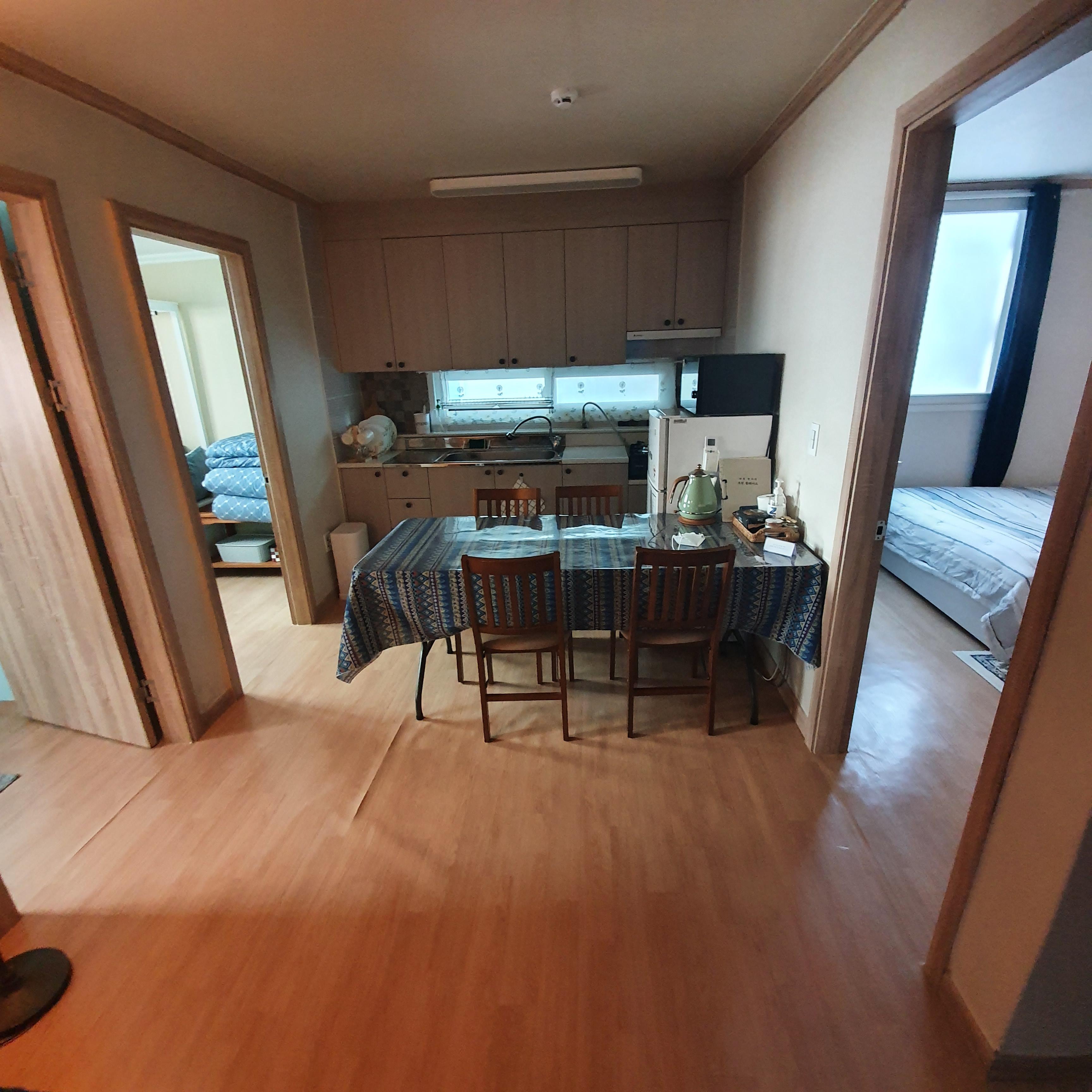 집은 3룸으로 되어 있었습니다. 큰 방에는 침대와 티비가 있었고, 거실에는 4인 기준 식탁이 있었습니다. 그리고 작은 쇼파가 있었습니다.
