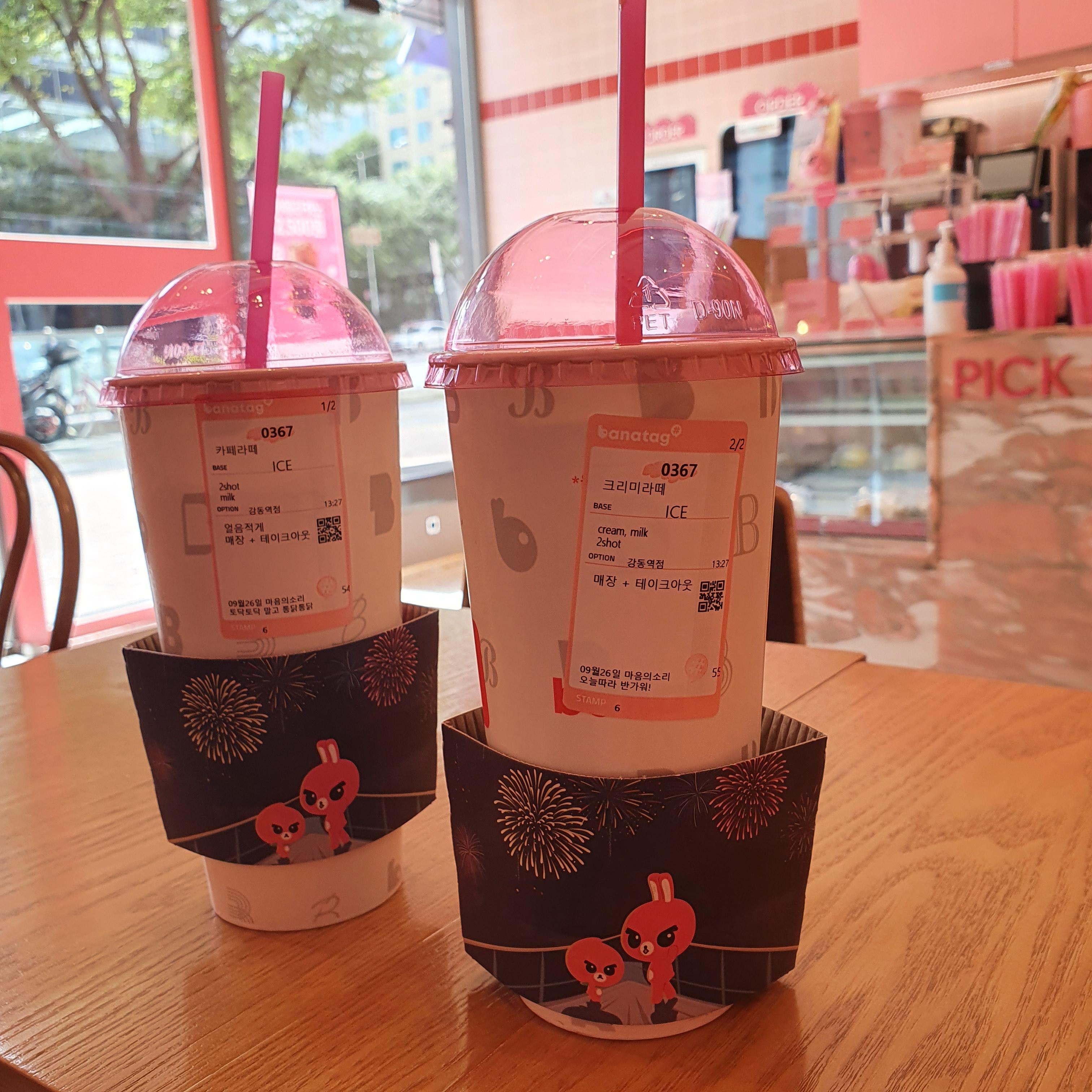 저희도 잠시 앉았다가 나갔어요. 그리고 이곳은 테이크아웃과 매장이용이 함께 가능한 용기가 따로 있더라고요. 그래서 중간에 테이크아웃하기 위해서 용기를 변경할 필요가 없어서 좋아요.
