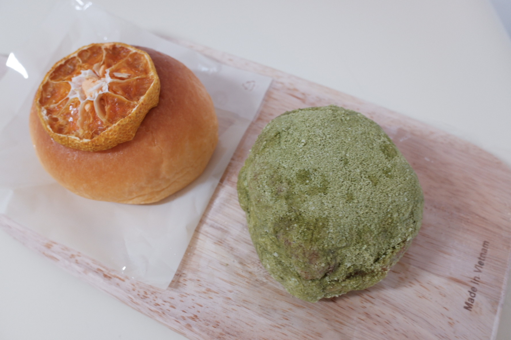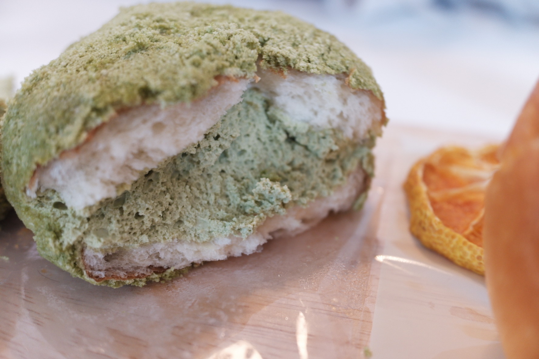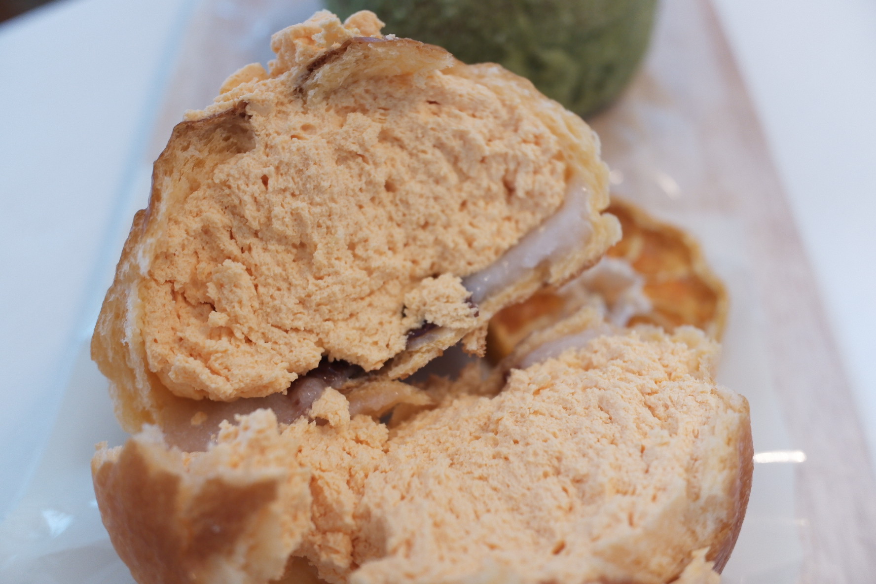 그리고 녹차맛은 흔하게 먹을 수 있는 녹차크림이였습니다. 빵에는 녹차가루가 뿌려져 있었어요.