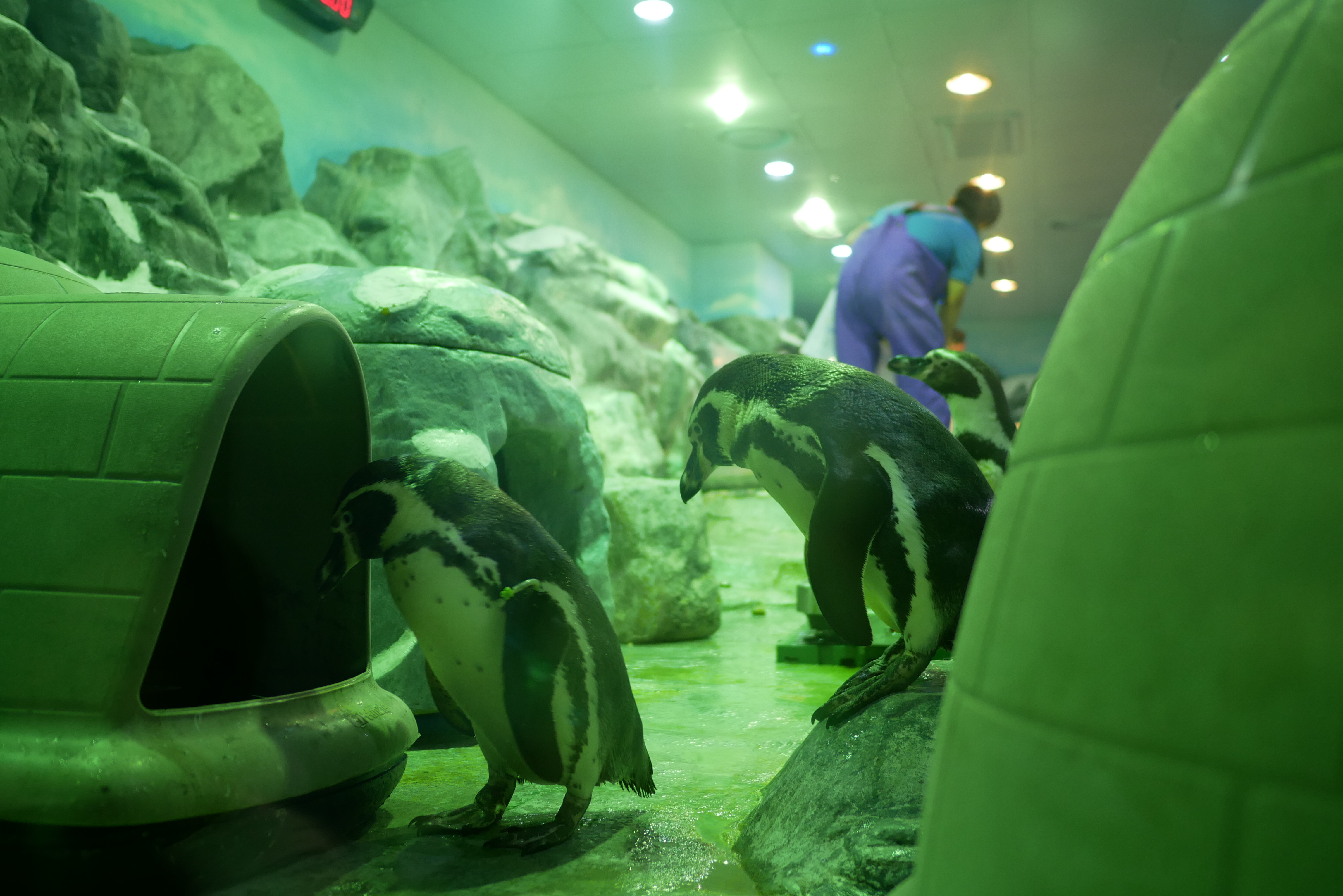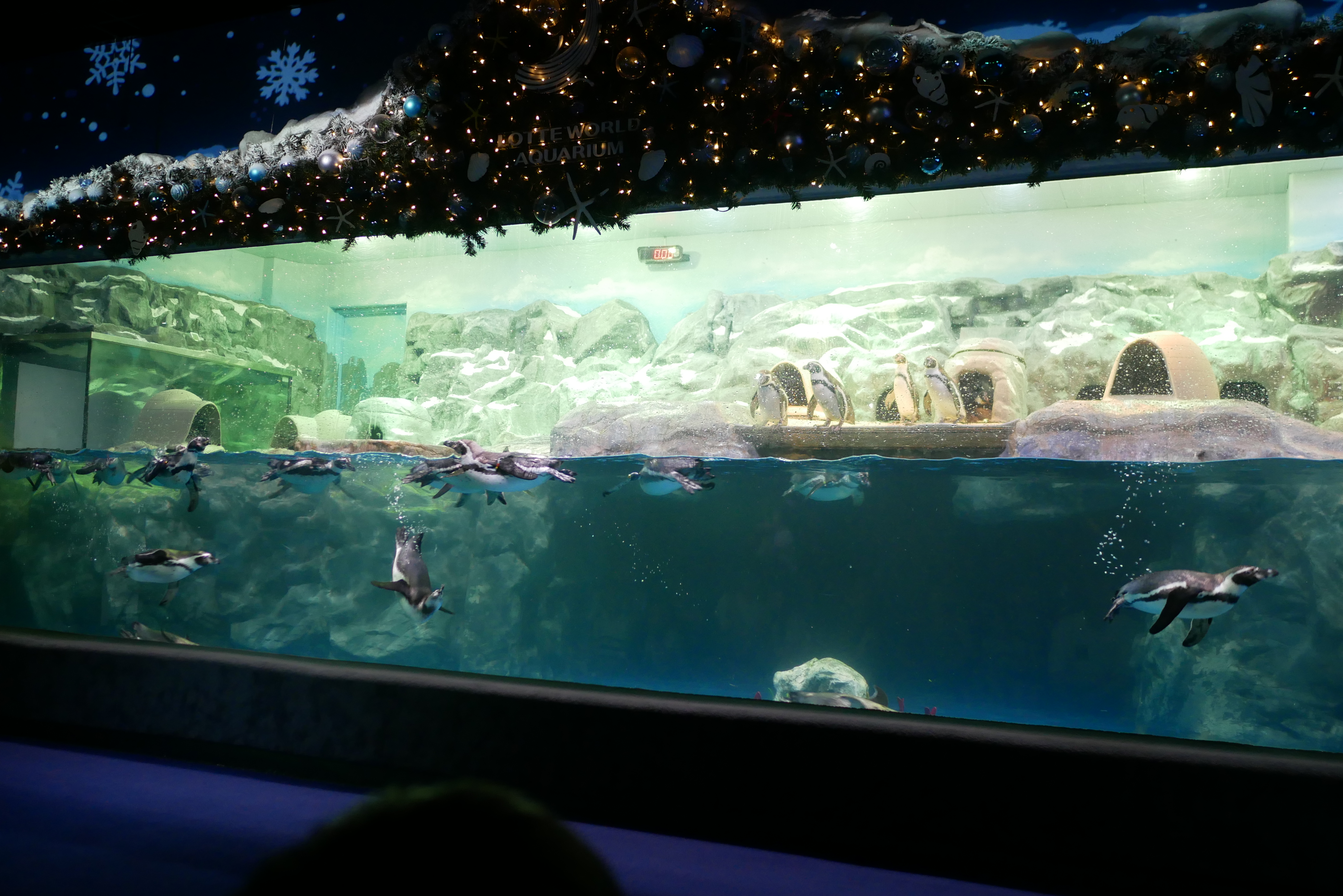 마지막으로 나가는 길에는 펭귄들이 있는 수조를 만날 수 있는데요. 아주 활발하고 모두 건강해보였습니다. 그리고 이렇게 옆으로 들어가면 아주 가까운 위치에서 펭귄을 만날 수 있습니다.