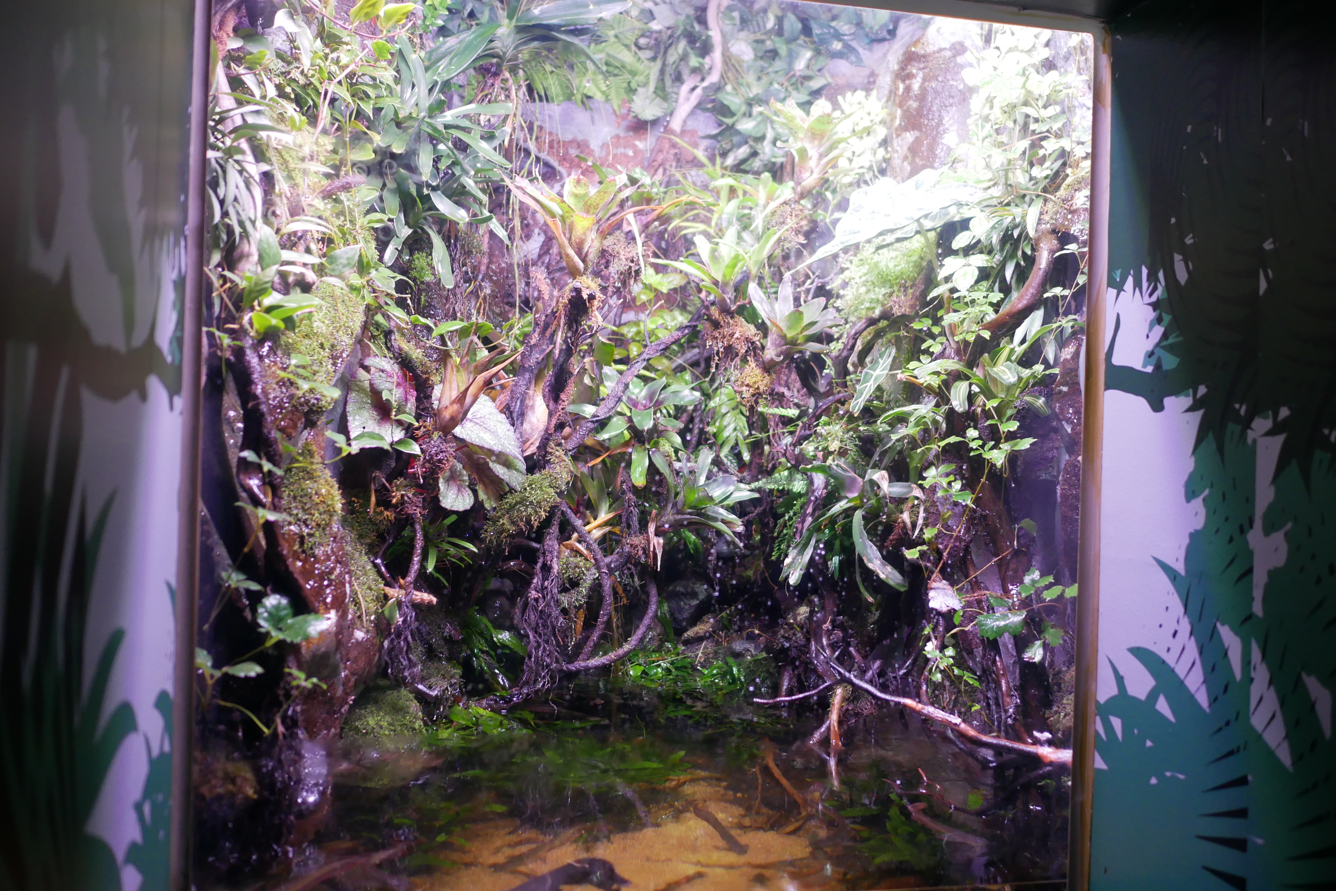 이렇게 아마존을 닮은 비바리움도 있고요. 자세히 보시면 안에 도마뱀과 물고기가 함께 살고 있습니다. 크기도 꽤 크기 때문에 실제로 보면 아주 멋있더라고요.