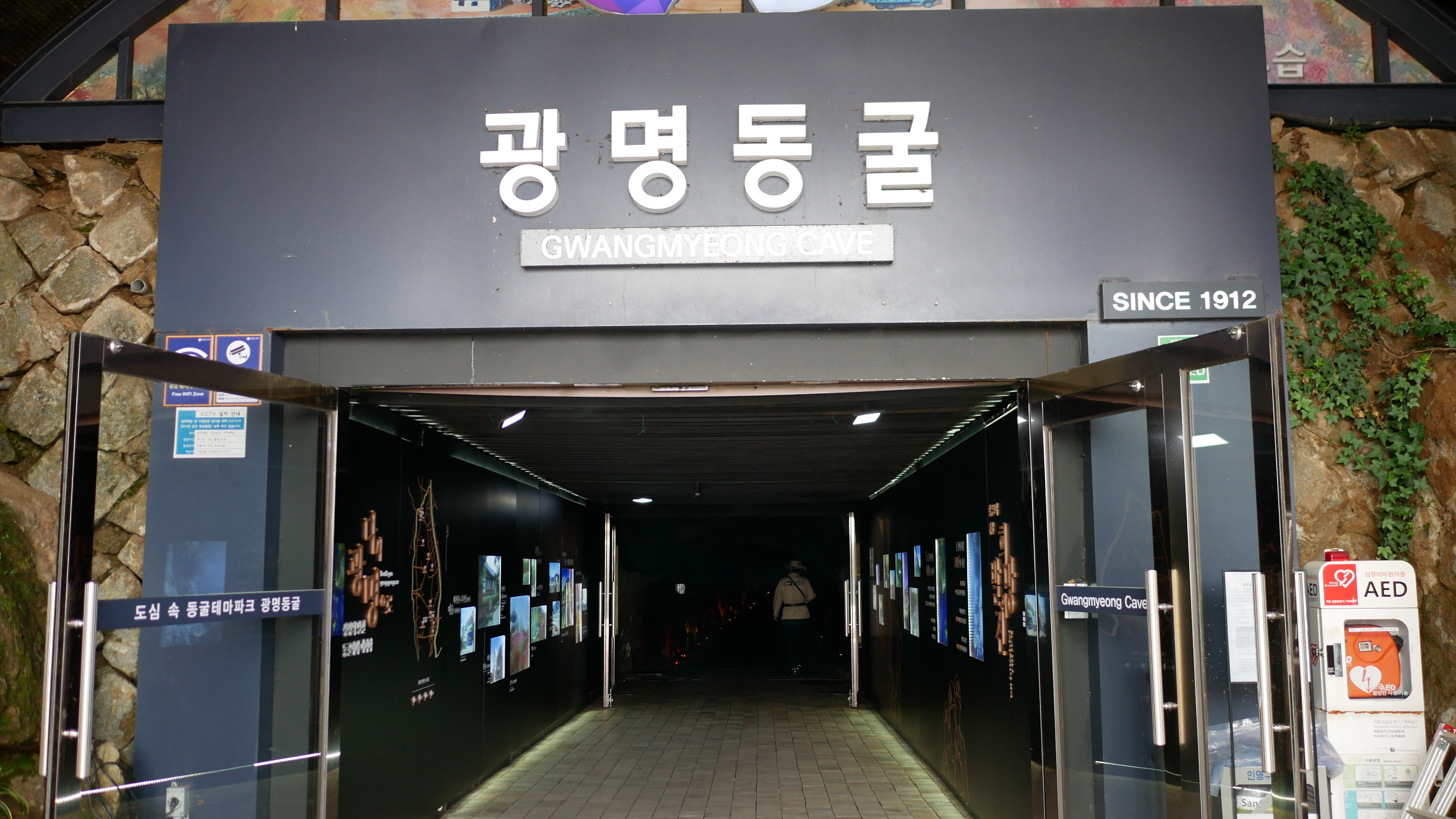 이곳이 광명동굴의 입구인데요. 동굴 내부에서 불어오는 바람이 정말 대단하더라고요. 왠만한 에어컨보다 훨씬 시원하고 앞에 있으면 더운 것을 모르겠더라고요. 이곳은 입구와 출구가 동일합니다.