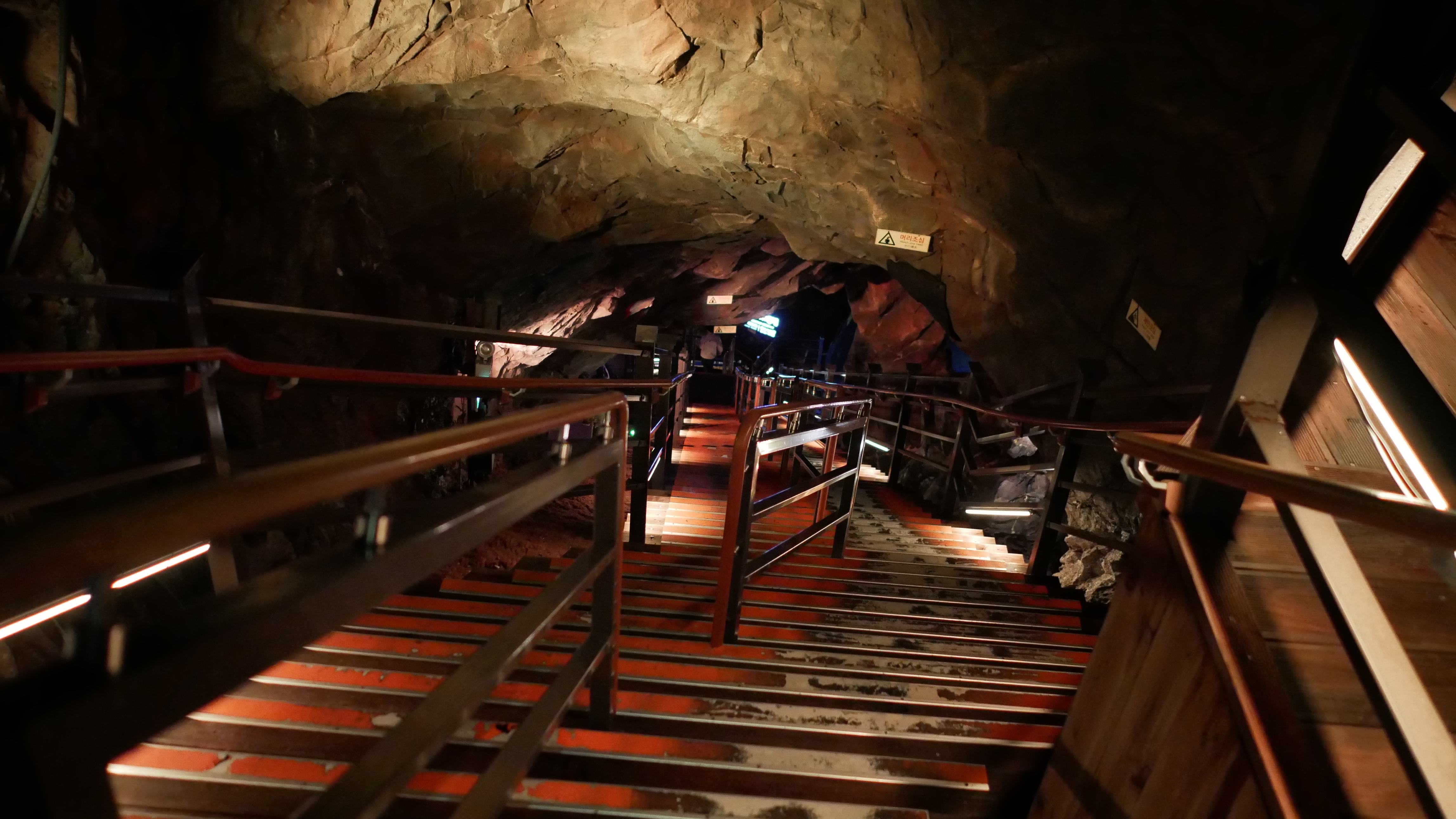 그리고 이제 지하로 내려가는 계단이 있는데요. 지금까지는 지상에 있는 동굴을 탐험했다고 하면 이제부터는 지하로 내려가는 것입니다. 광명동굴을 층이 여러가지가 있는데요. 실제로 관람할 수 있는 층은 제한적입니다. 그래도 내부가 엄청 넓은 편이죠.