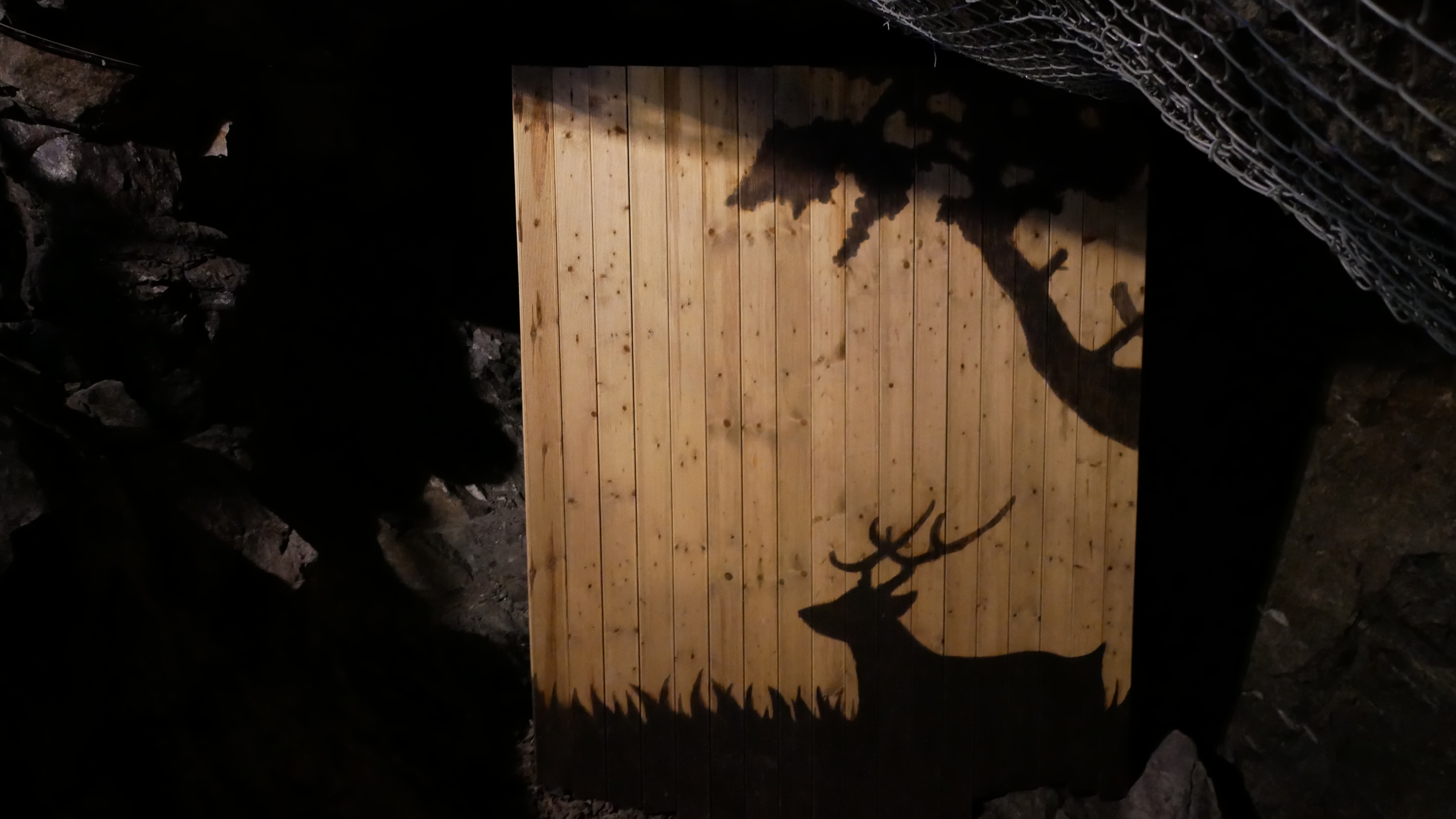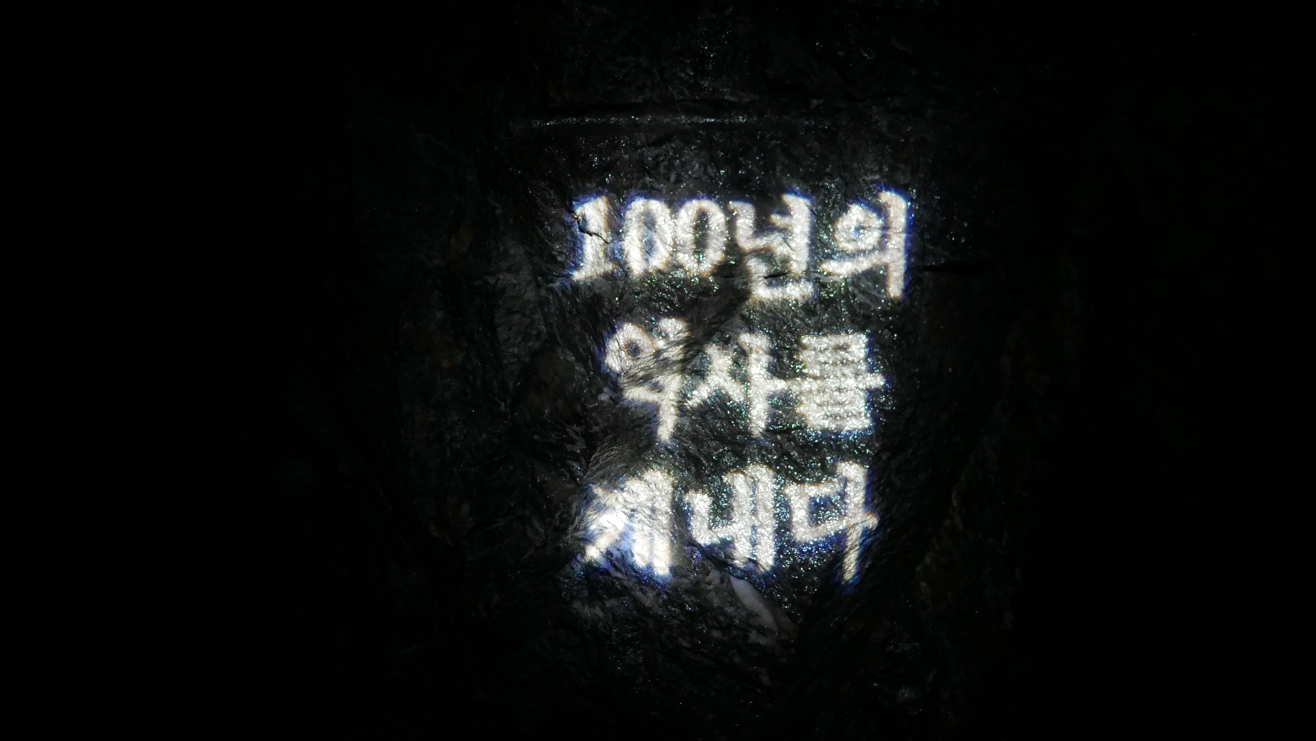 이곳이 동굴예술의전당인데요. 실제로 앞에 보이는 동굴벽에 영상이 나오게 됩니다.