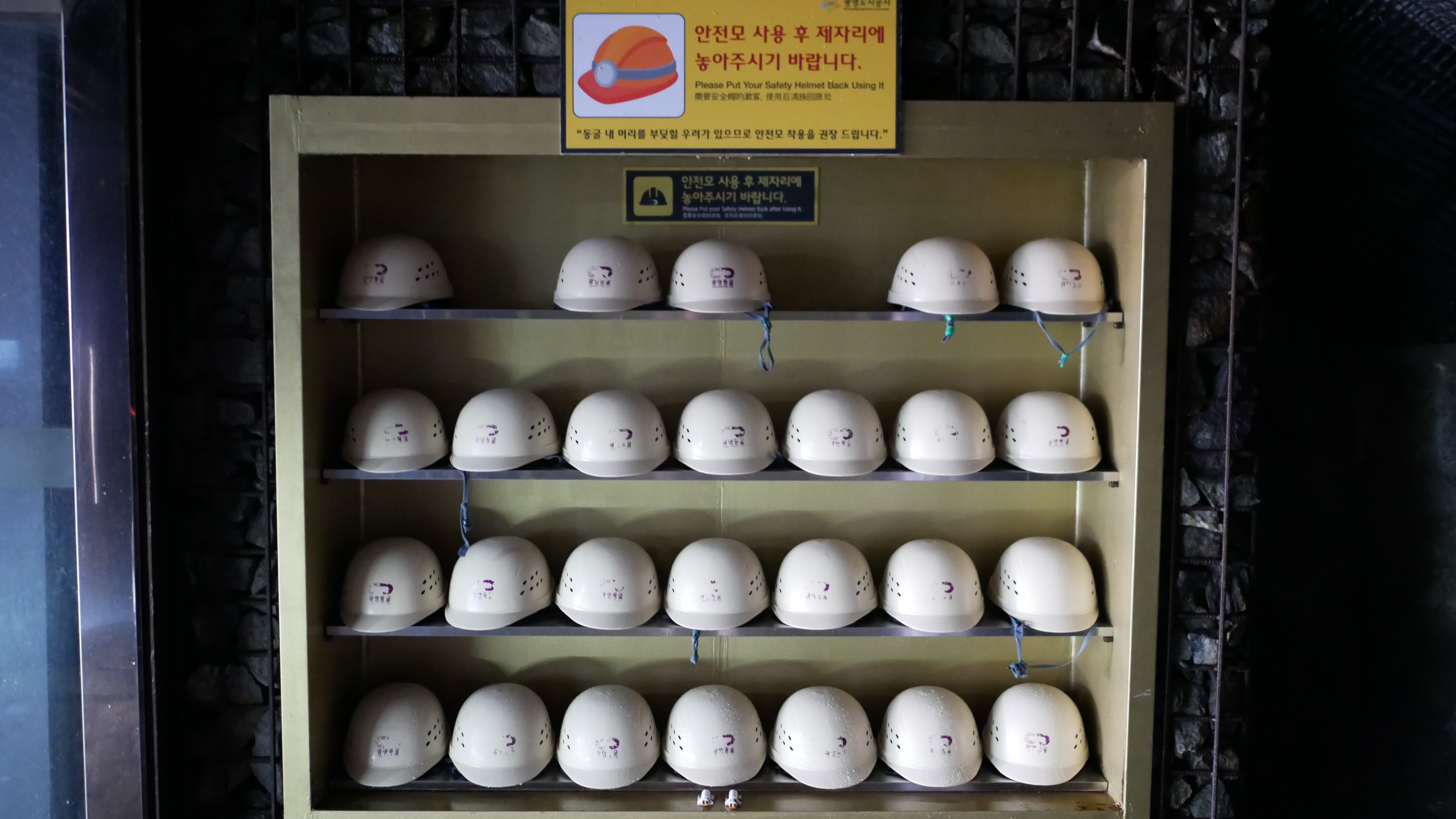 그리고 들어가기 전에 이런 헬멧을 무료로 대여해주는데요. 아무래도 동굴이다보니까 안전을 위해 헬멧을 쓰는 것을 추천하지만, 저희는 사용하지 않았습니다. 제 키가 180정도인데 살짝 닿을만한 구간이 있었지만 크게 문제는 없더라고요. 그래도 조심해서 나쁠건 없죠.