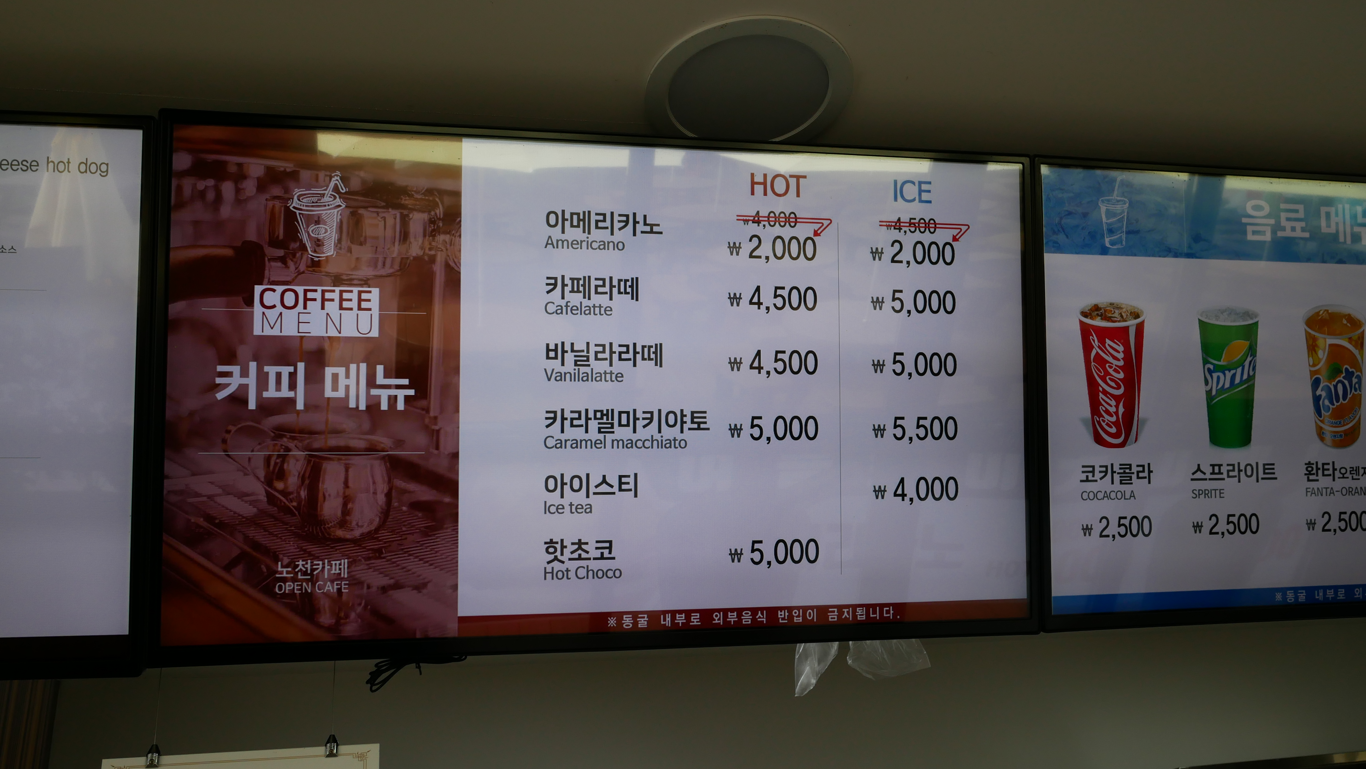 그리고 동굴에 들어가기 전에 잠시 쉴겸 앞에 있는 카페에 방문해서 커피를 마시면서 잠시 휴식을 했습니다. 동굴 내부로 음식물 반입이 불가능하니 미리 다 드시고 입장하셔야합니다.