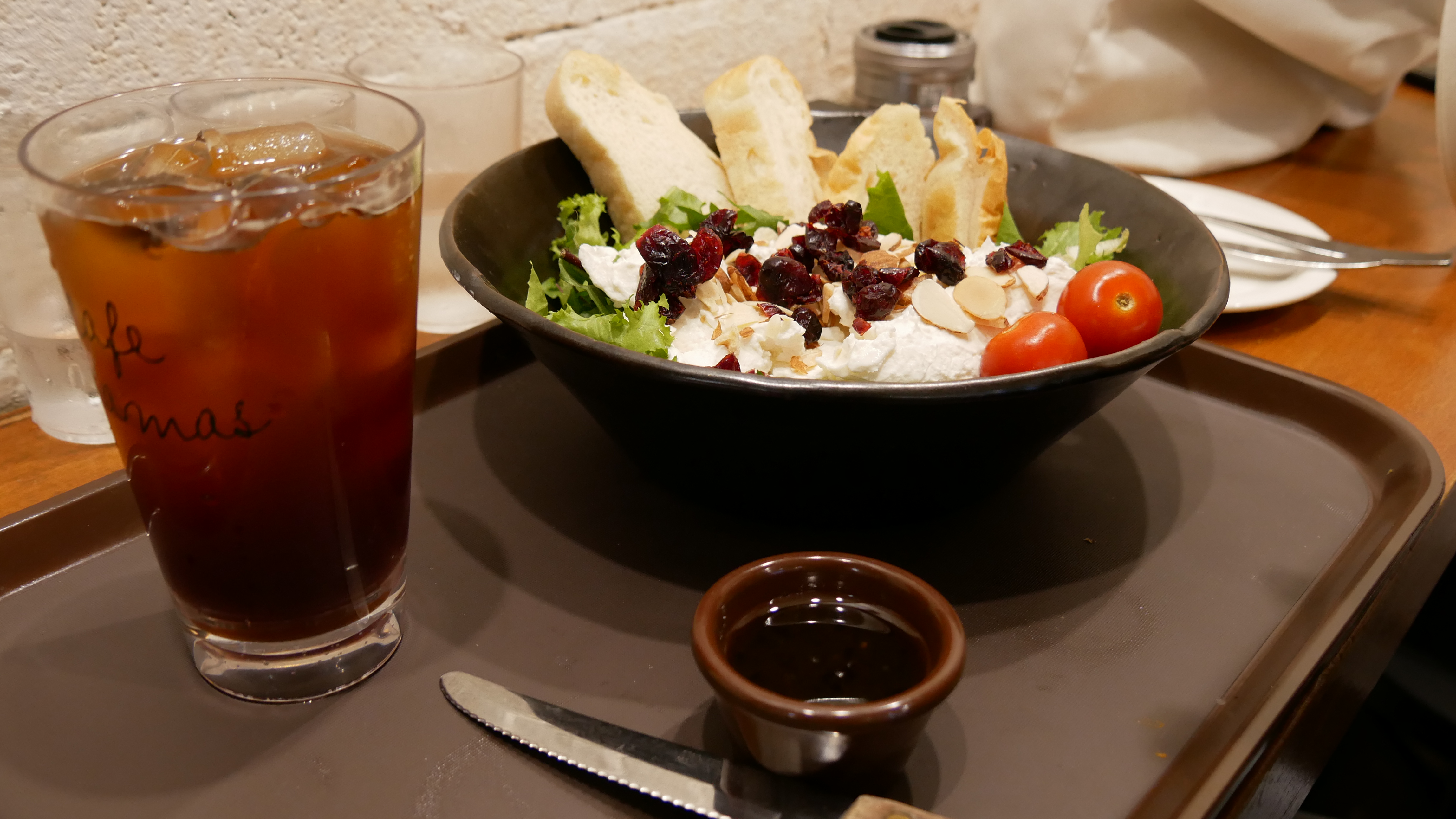저희는 리코타치즈 샐러드와 더블치즈햄 파니니, 아이스 아메리카노를 주문했습니다. 리코타치즈 샐러드는 12,000원이고, 파니니는 8,900원입니다. 이곳 리코차치즈 샐러드가 가장 유명한 메뉴라고 해서 기대가 되었습니다. 파니니는 처음 먹어보는 메뉴인데, 왠지 실패할 일이 없는 메뉴 같아서 주문했습니다.